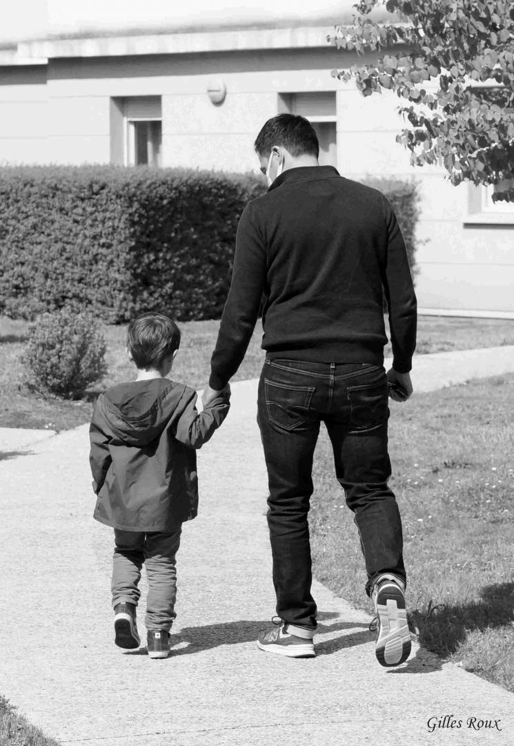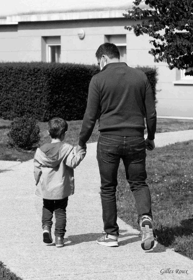 En effet contraste de taille entre celui qui emble le père et le fils. Mais, le fond trop net nuit à l'impact de la photo.