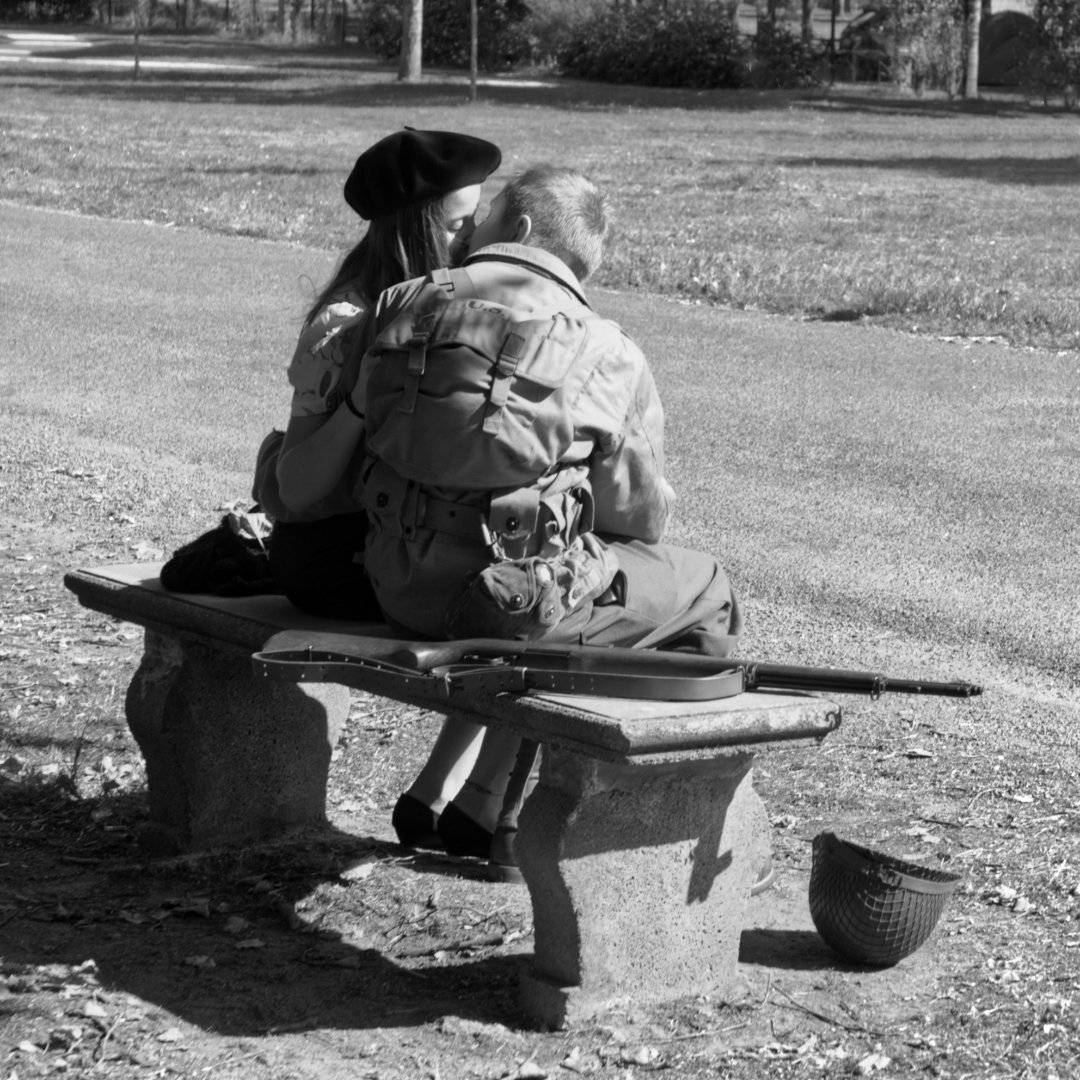 Sur la 100, la liberté se découvre au second degré. On devine après coup que c'est pendant sa permission que le militaire retrouve de la liberté. En première vue on voit deux amants qui s'embrassent.