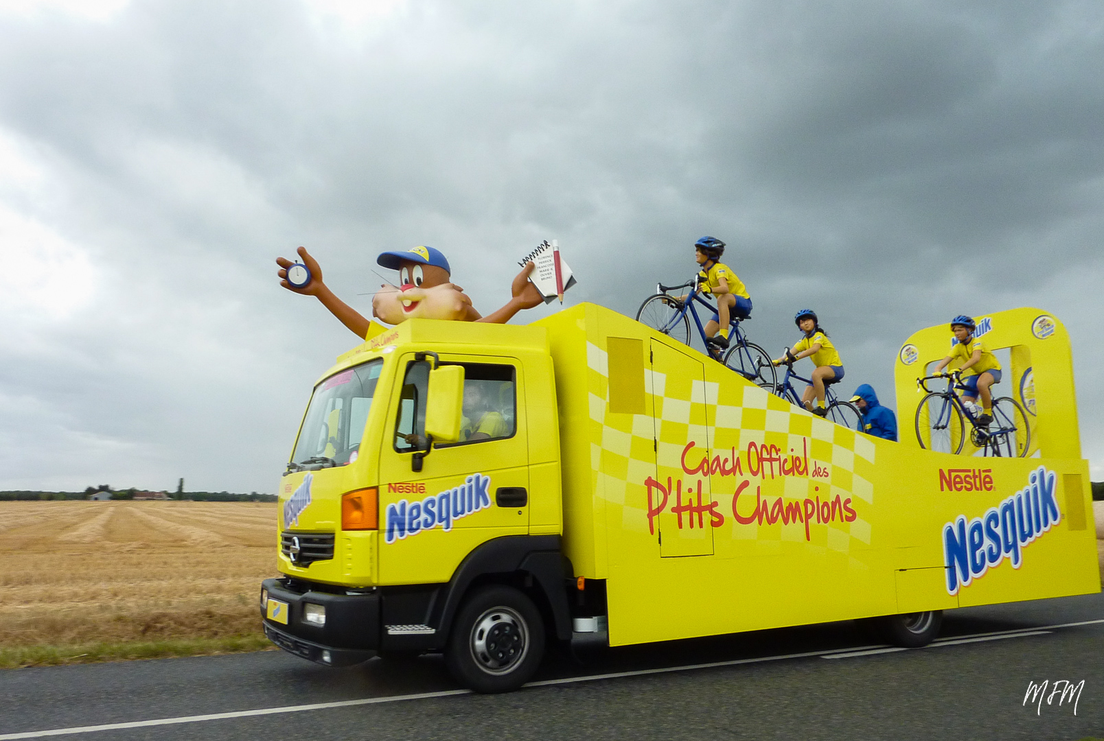 Une préférence pour la 2, la couleur du thème se retrouve sur le véhicule et le champ, il y a un contraste de couleurs et un autre sur l'horizontale/diagonale. Un petit regret, pour moi, sur les 2 photos, que le ciel ne se soit pas un peu plus dégagé à ce moment 😢. Pour la 1, n'avoir que les 3 p'tits champions et la partie ascendante du camion pourrait être intéressant, sachant que le regard du premier suit le mouvement. Un gros recadrage risque de nuire à la qualité d'image, mais bon l'essentiel est quelle est aussi dans le thème selon moi.
