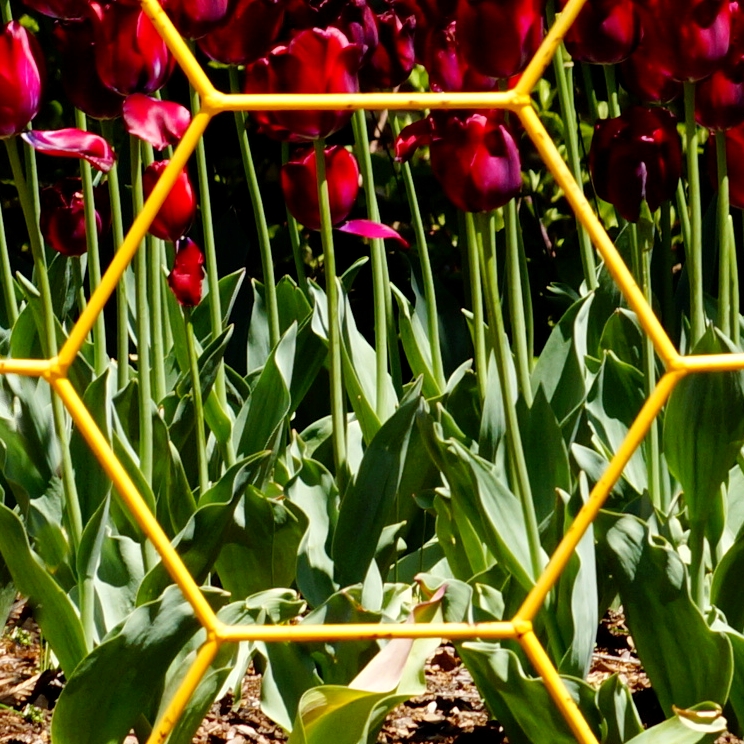 Ca entre bien dans le thème. Selon moi et en fonction de la distance entre la forme et les fleurs, une très grande ouverture permettrai d'utiliser les couleurs de fond pour mettre en valeur la forme et sa couleur (en gardant une netteté sur la grille).