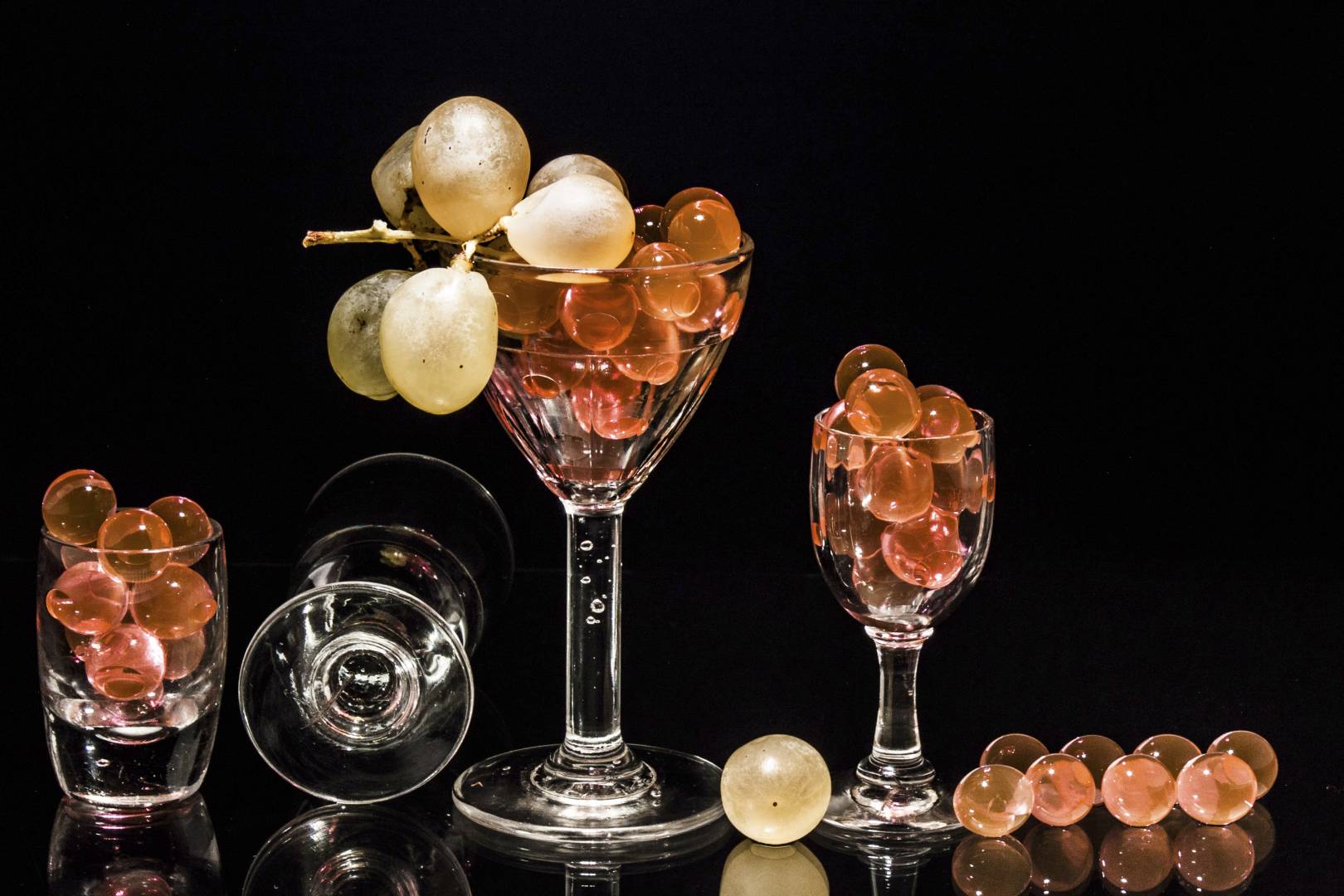 Le verre de gauche est rapidement mis à l'écart par la coupure que provoque celui qui est couché, dans cette position ce dernier n'apporte pas grand chose selon moi. IL y a effectivement quelque chose de statique dans ce positionnement. La particularité d'une "sphère" peut être exploitée pour suggérer le mouvement.