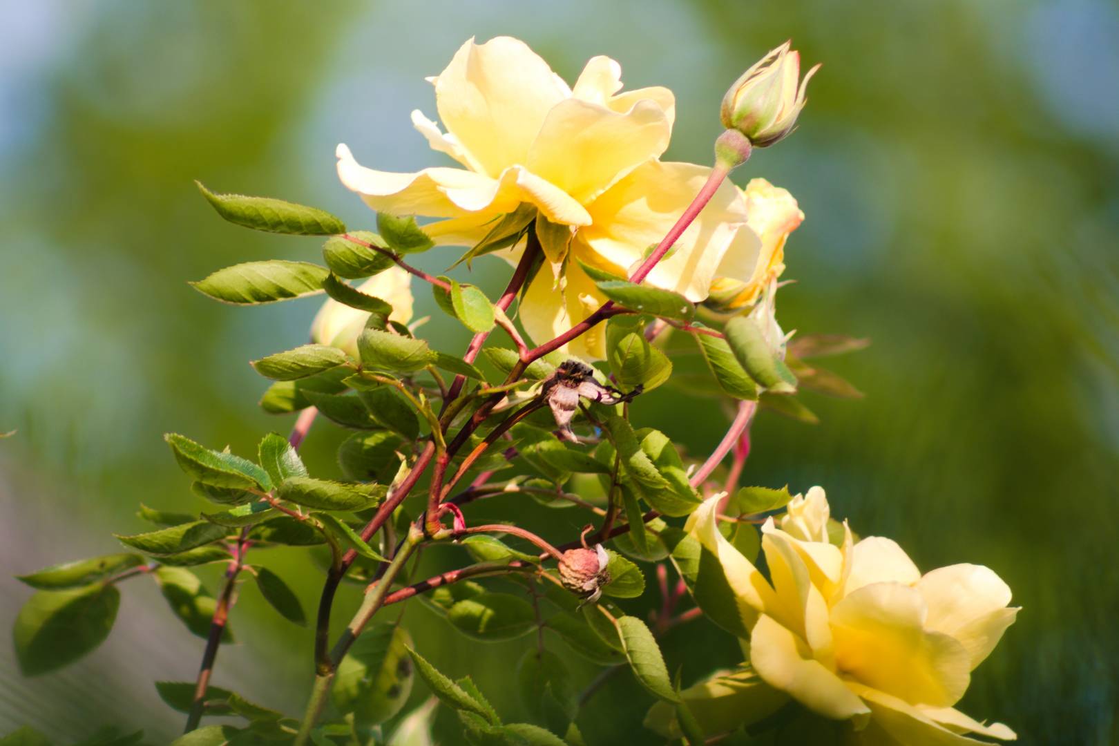 On est dans un cas de figure ou la grande ouverture est utilisée ( à moins que soit un télé). Sur la 109, a tenté d'isoler la fleur jaune sur fond de bleu et vert.