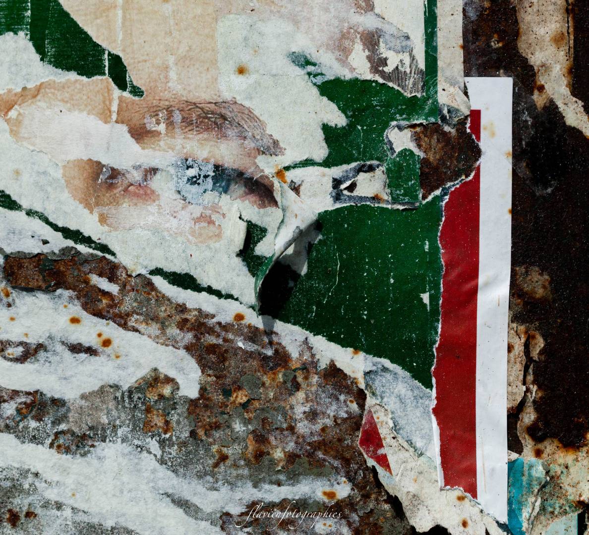 L'affiche politique en temps de campagne n'a pas une durée de vie très longue (très vite recouverte ou arrachée). Plus facilement reconnaissable sur la 2 et 3, personnellement je retiendrai la 2. On a bien une affiche qui en a remplaçé une autre, qui elle même a été remplacé, etc. Ces 2 personnages ne prennent-ils pas plus d'importance que les affiches (sujet de départ) ? Dans un sens oui, par ce regard et le nom. Mais l'état dans lequel ce trouve ces affiches, nous ramène à ce que l'on voit tous les jours en temps de campagne politique. Collée le soir, arrachée le matin. Comment chacun peut interpréter ces 3 regards, ça c'est une autre histoire.