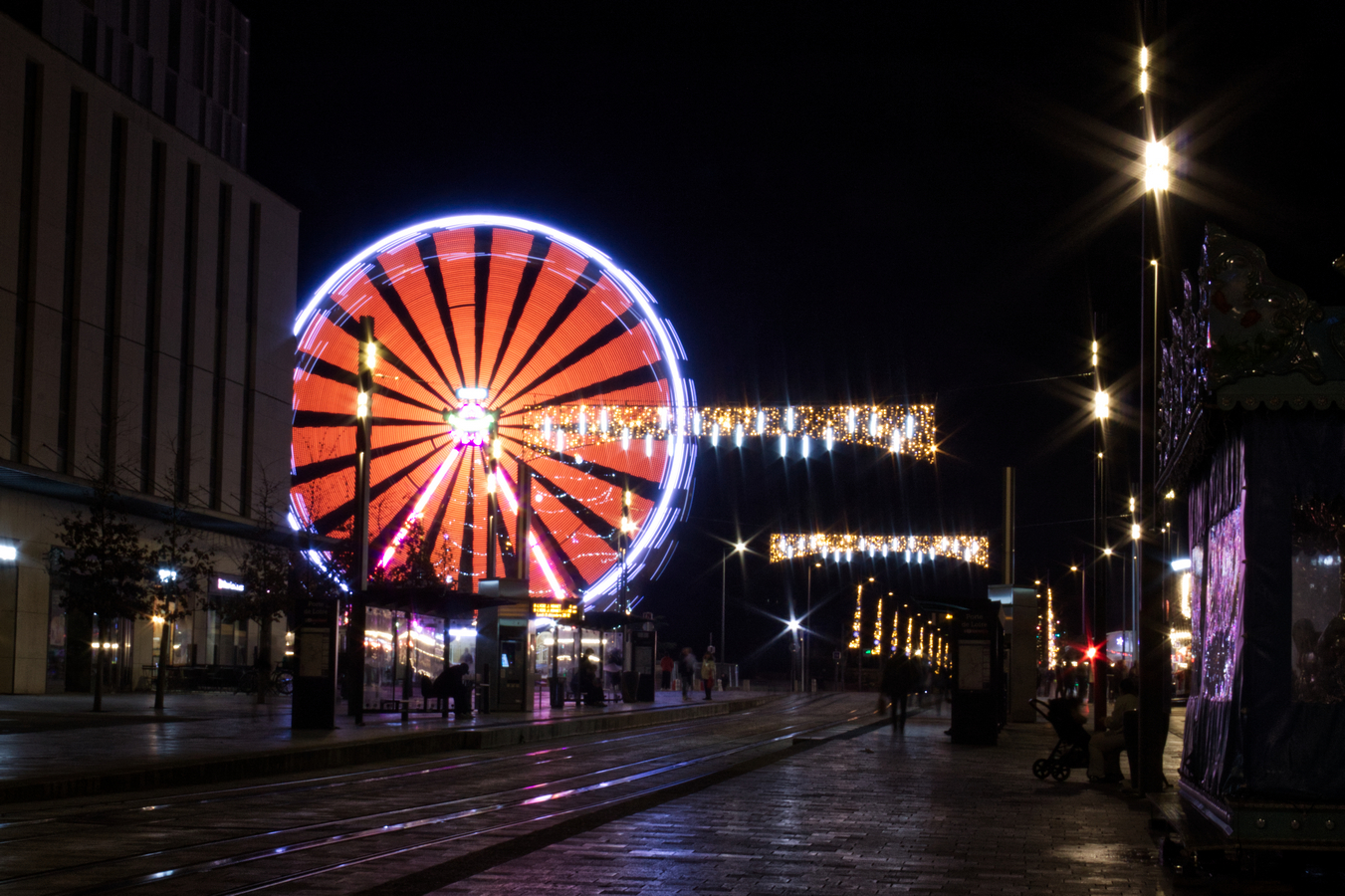 Pour le tram, il aurait peut être fallu oser un flash second rideau pour avoir une image du véhicule.