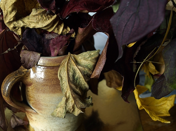 Superbes natures mortes riches en teintes d'automne. Un fond noir aurait sans doute évité les trous clairs que l'on voit sur les photos 1 4 et 5. La petite étiquette sur la seconde parasite la photo.
