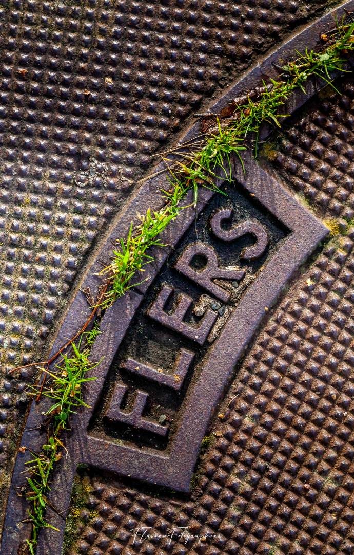 Bonne mise en valeur du contraste entre l'herbe et la fonte de la plaque. Un peu plus de contraste ou d'exposition pour lui donner davantage de pêche ?