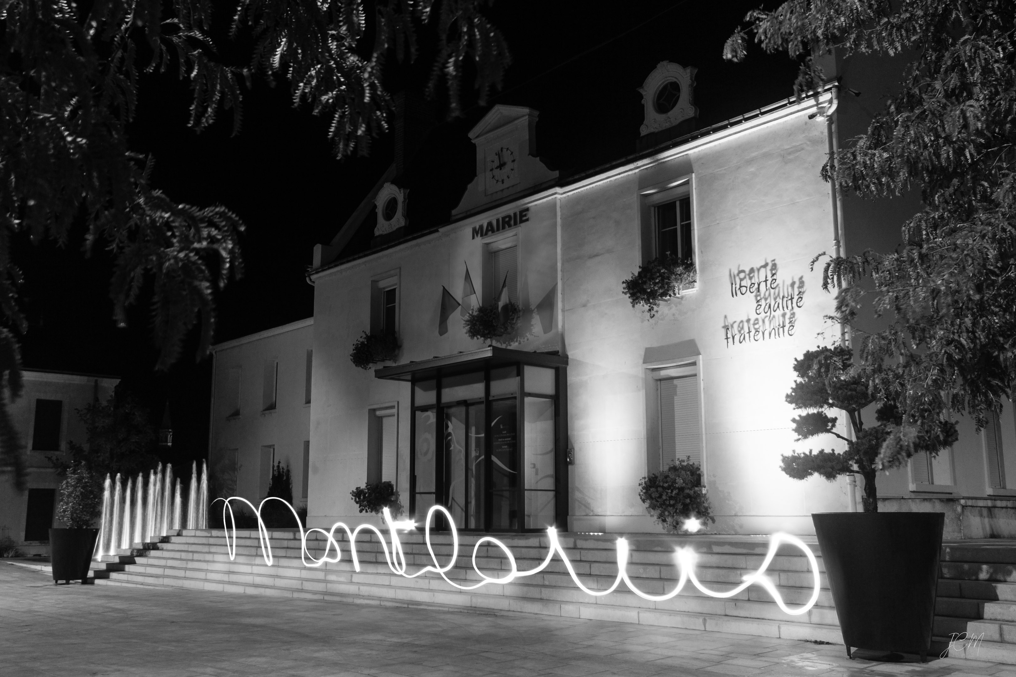 Il était impossible de réaliser cette image en une seule prise. En effet pour écrire Montlouis avec ma torche il me fallait 10 à 15 secondes. Je devais régler l'ouverture du diaphragme pour que la trace des mouvements de cette torche soit bien lumineuse, mais cette durée de pose et cette ouverture auraient surexposé fortement les bâtiments de la Mairie.